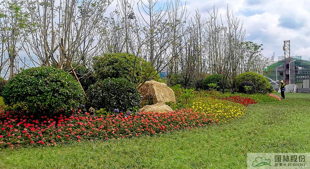 據項目現場負責人楊升超介紹,作為項目的施工單位,園林股份秉承精益求精的施工精神,堅持匠心造園的理念,從材料選擇、微地形處理、植物配置等多方面,通過對細節的嚴格把控,對工藝的嚴格要求,致力于打造生態自然、節約環保的城市入口新景觀。