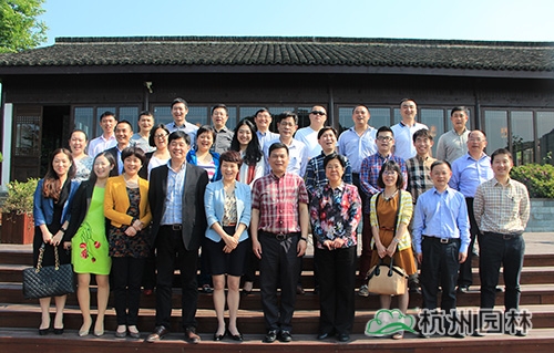 4月29日上午,由江干區發展改革和經濟局、杭州市園林綠化股份有限公司共同主辦的江干區企業家(智慧經濟)專題研修班第二次項目對接會暨臨安學習交流活動在風景秀麗的青山湖花園中心順利召開。江干區人民政府副區長魏丹英、區政協副主席劉興仙、區發改局局長王志強、區住建局副局長劉業平等領導,及來自服裝、電器、汽修、物流、環保、文創、制造等行業的20多位優秀企業家坐客青山湖花園中心的清風居,進行智慧經濟的交流與探討。