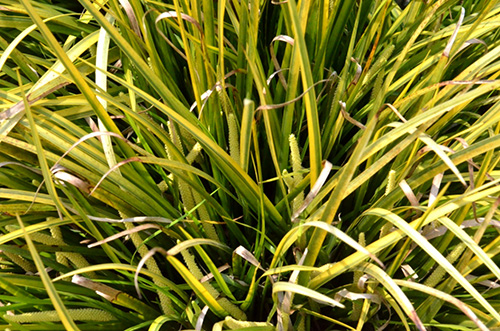 我是天南星科菖蒲屬植物,叢生型多年生常綠草本,植株低矮,株高20-40cm;葉色艷麗,葉條形,邊緣及葉心有金黃色線條;花序圓柱狀,黃綠色;全株帶香味。記住我了嗎?我最大的優勢是常綠、葉片全年金黃色哦!冬季景觀帶上我,包君滿意!