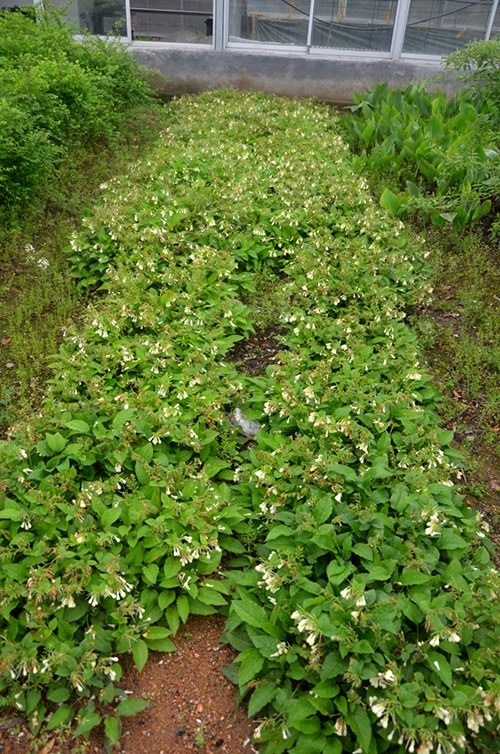 我是紫草科聚合草屬植物,叢生型多年生草本,作為高產飼料作物被世界各地廣為熟知,全株被向下稍弧曲的硬毛和短伏毛,聚傘花序,花序含多數花,花冠黃白色,花期3-5月,株高20-30cm。低矮緊湊可作為林下地被使用。還為低矮植物找不到發愁嗎?找我,找我,找我!