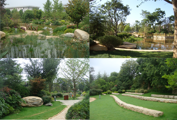 昆明市市級黨政機關辦公用房搬遷建設項目區內景觀綠化工程(第三標段),地處昆明市呈貢縣吳家營鄉小尖山西北附近,總面積101800㎡,工程包括硬質景觀、綠化種植和水電工程,為大型綜合性園林景觀工程。綠軸D組團內的人工湖的施工,清香木、黃連木和山楂等特型樹的應用,自然石汀步、老石板園路等生態型游步道的鋪裝,成為工程中最大的特色和亮點。漫步在林蔭小道上,呼吸著清新的空氣,聆聽著涓涓的流水聲,一幅綠意盎然、閑適愜意的生動畫卷帶給人們更多關于自然的完美體驗!