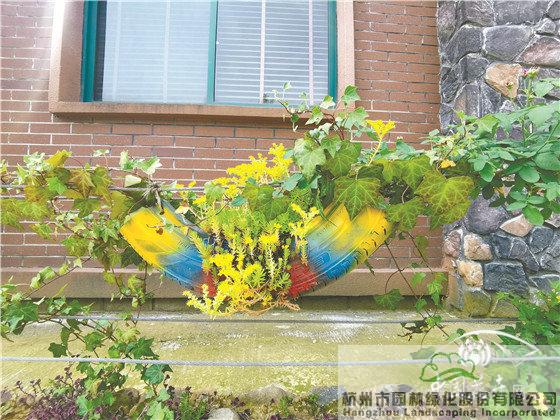 梅秋里的房屋多為兩到三層建筑,但建筑風格、外墻立面均有區(qū)別,因此,在進行景墻施工時,根據每家的房屋建筑特色選擇了不同的材料和植物配置手法。如,建筑外立面為紅色的,景墻以紅色磚為主,搭配月季、佛甲草等植物;建筑外立面為灰色的,景墻以淺黃色磚為主,結合小木樁或仿竹籬笆,搭配石竹、美女櫻等植物;建筑外立面有大理石點綴的,景墻以桐廬石為主,輔以裝飾過的輪胎,點綴佛甲草、常春藤等植物。不同的處理手法,使得家家戶戶的景墻既有連續(xù)性,又有各自的風格。