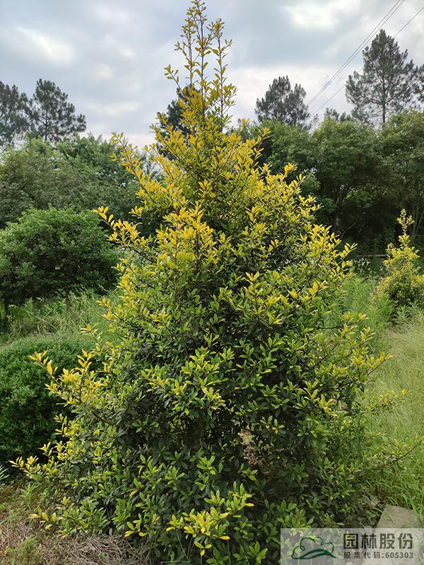 黃金枸骨Ilex × attenuata 'Sunny Foster':是William F. Kosar 于1964年在美國皇家植物園發現的Ilex×attenuata 'Foster No. 2'芽變。常綠灌木或小喬木,具有很強的萌蘗力和耐修剪性,能夠適應城市環境,抵抗空氣污染,同時也具有一定的耐鹽性和耐旱性。這些特性使得黃金枸骨成為城市綠化帶的理想彩化樹種,為城市環境增添了美麗的景觀效果。早在2006年,黃金枸骨就被美國冬青園藝協會評為年度冬青,充分肯定了其在園藝界的地位和價值。在春季,黃金枸骨開出美麗的小白花,如果與其他雄性冬青搭配種植,到了冬季還會結出鮮艷的紅色果實,為園林景觀增添了豐富的色彩和層次。