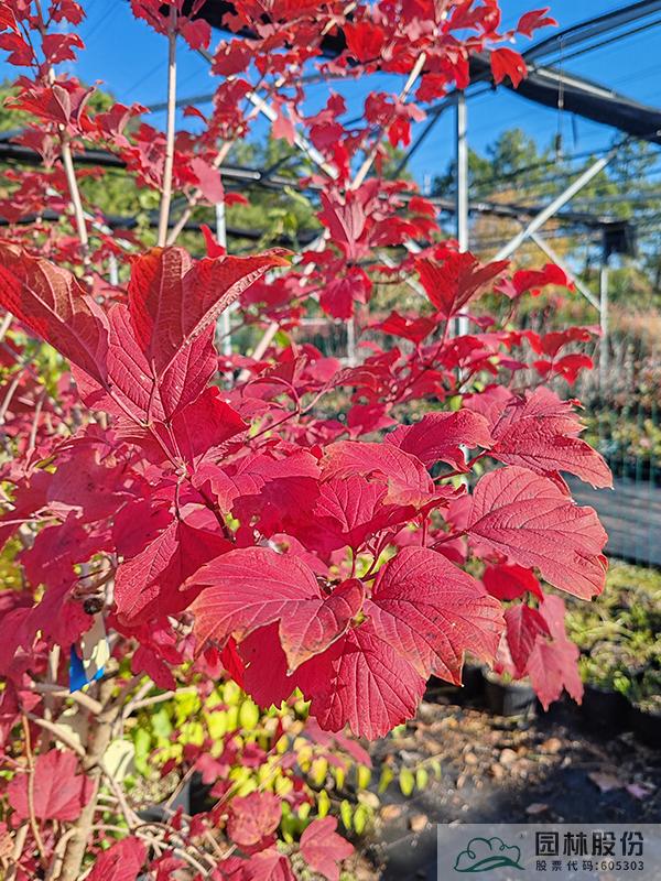 忍冬科莢蒾屬,叢生性落葉灌木,高可達4米。花白色,花期4-5月,果大而紅,觀果期長,可從7月持續到10月。葉掌狀,通常三裂,秋季一般9-10月葉色開始轉紅,11月達到最佳效果。歐洲莢蒾是莢蒾屬中秋色葉效果較好的一個種類,紅葉期來得比較早,且葉色最為鮮艷。該種病蟲害少,適應性強,耐寒,北方室外能正常生長。生長速度快,適合工程應用或庭院觀賞。